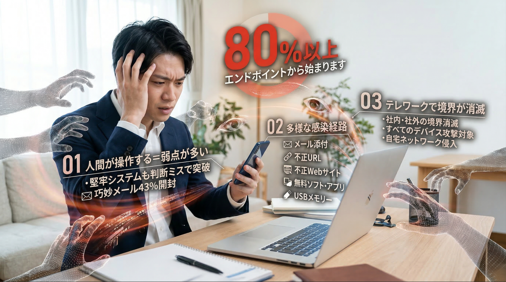 サイバー攻撃の80%以上がPC・スマホなどのエンドポイントから始まります